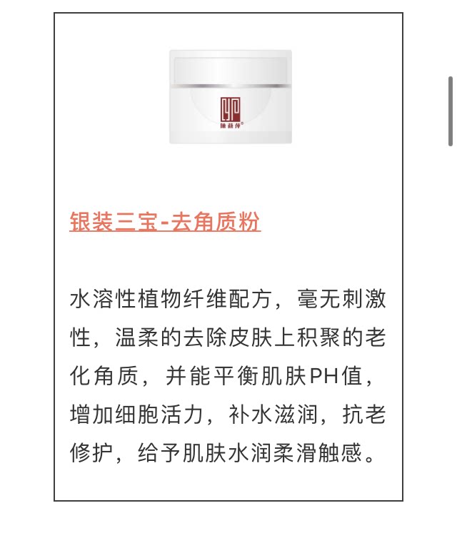 [产品功效] 柔和除去肌肤上积存的老化角质,平衡皮肤酸碱值,促进新陈代谢,增加细胞活力,使皮肤清新细致。