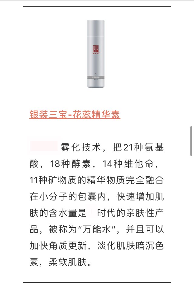[产品功效] 有效激活肌肤细胞活力,增强肌肤锁水因子活化,促进营养成份转化吸收。